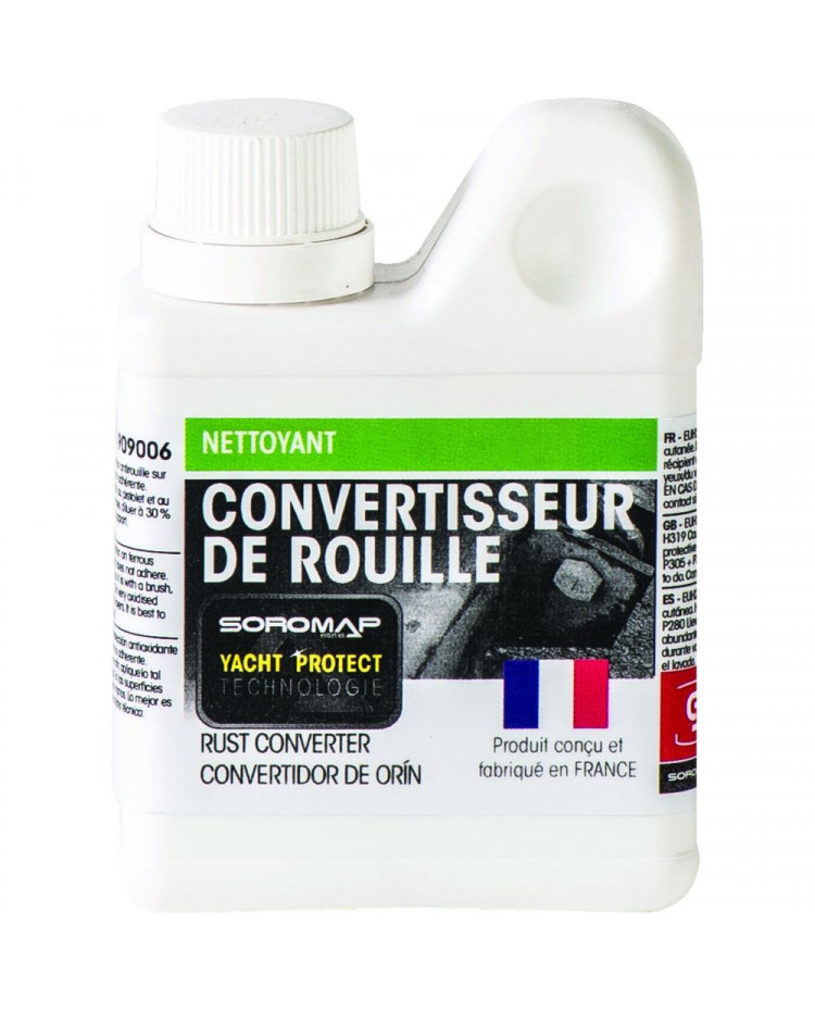 Le CONVERTISSEUR DE ROUILLE est un produit qui permet tout à la fois de traiter et de protéger contre la corrosion, les métaux ferreux oxydés sans avoir à les décaper préalablement. Protection complète contre la corrosion le CONVERTISSEUR DE ROUILLE de par son effet « décoratif » (brillant noir intense) peut rester en finition définitive à l'intérieur et plusieurs mois à l'extérieur avant d'être recouvert par une laque de finition.