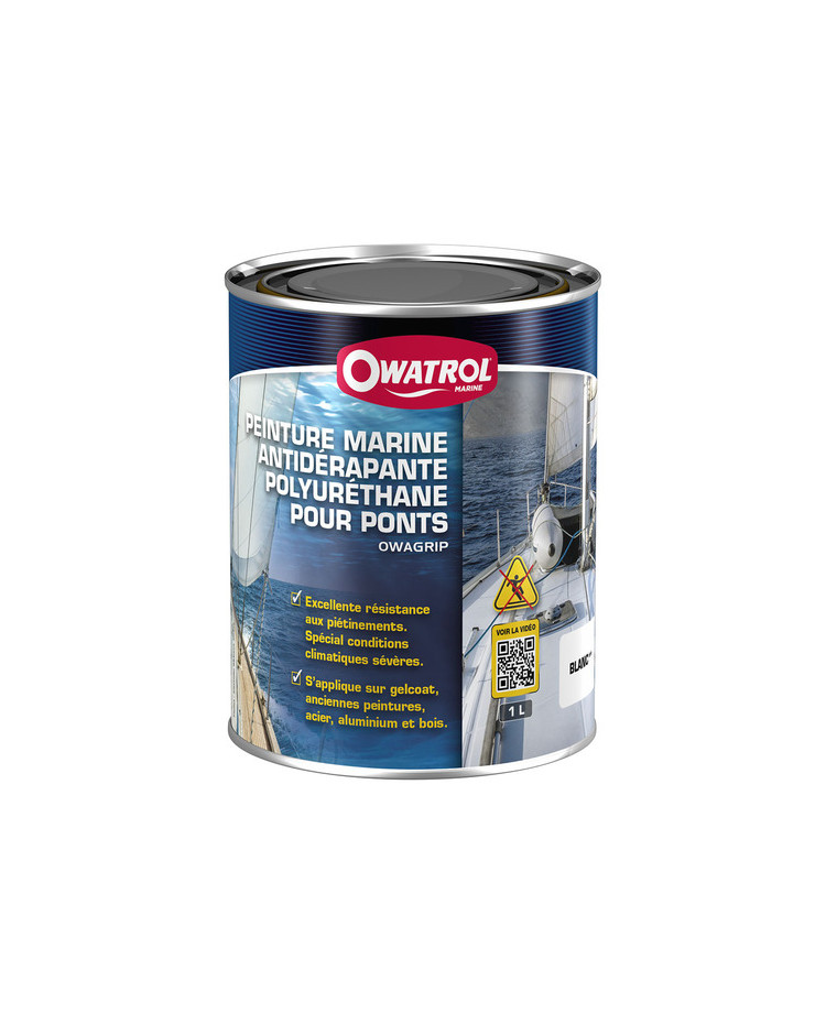OWAGRIP est une peinture marine antidérapante base polyuréthane pour les ponts de bateaux. Sa formule ultra-performante permet une excellente résistance aux piétinements et aux conditions climatiques rudes (pluie, UV, vent).