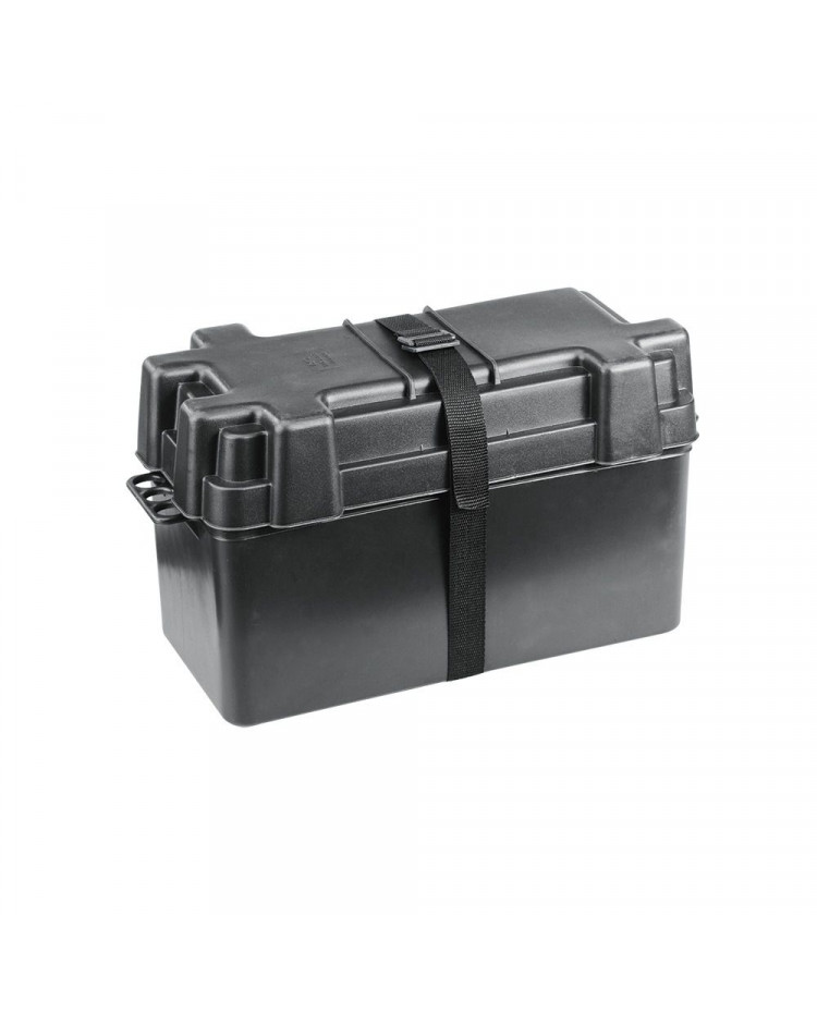 Bac à batterie en plastique avec couvercle et sangle de fixation
