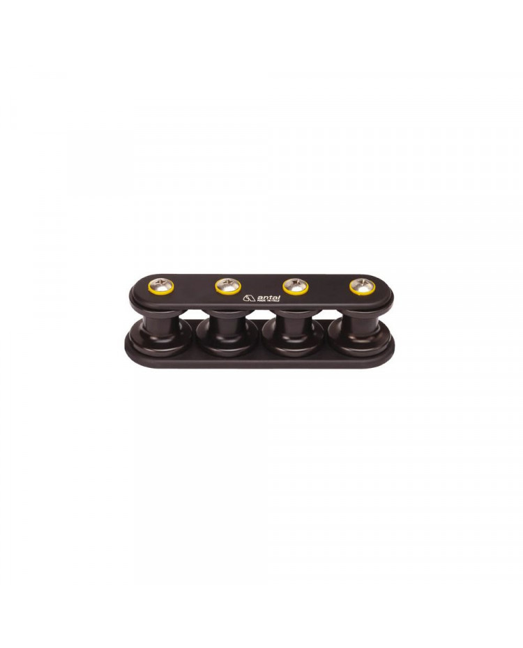 La boite à réa V-CAM Antal permet aux manoeuvres d'être guidées en sortie des bloqueurs vers différents winchs. Les réas sont en résine avec roulements latéraux à billes captives et le carter en aluminium anodisé dur noir, livré avec la visserie.