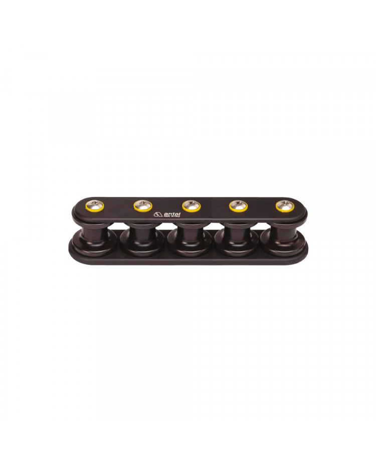 La boite à réa V-CAM Antal permet aux manoeuvres d'être guidées en sortie des bloqueurs vers différents winchs. Les réas sont en résine avec roulements latéraux à billes captives et le carter en aluminium anodisé dur noir, livré avec la visserie.