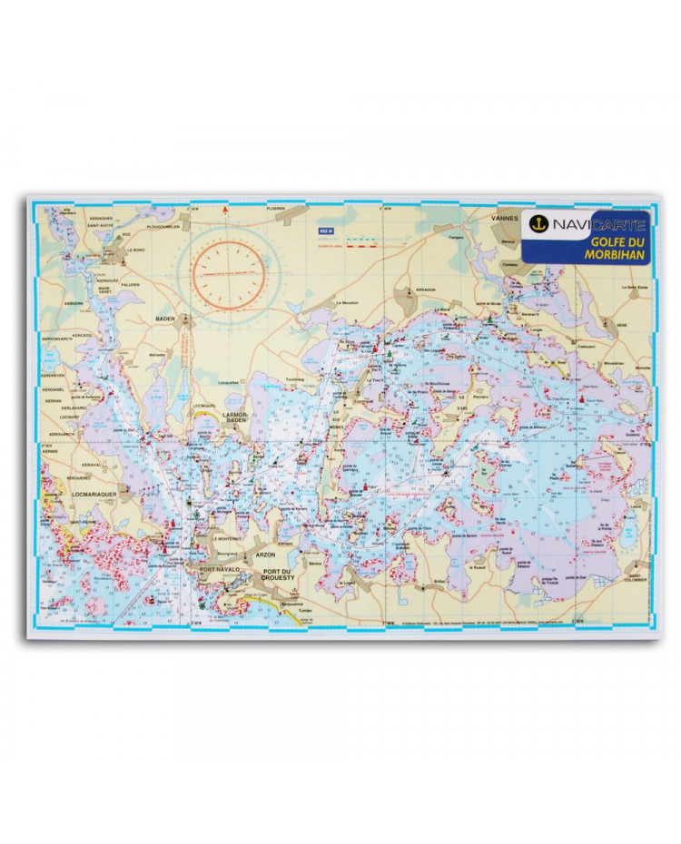 Carte plastifiée Golfe du Morbihan Les cartes marines A3 plastifiées sont spécifiquement conçues pour les navigations humides ! Elles apportent les avantages suivants: - Encombrement minimal : format A3 à poser dans le fond du cockpit en régate ou en cabotage - Plastification : résistance accrue à l'humidité sur les petites embarcations (dériveurs, canoë...) - en prime vous pouvez les utiliser en décoration comme sets de tables ! Carte établie d'après les cartes SHOM qui font foi, en vertu de la convention 2/89 SHOM - NAVICARTE