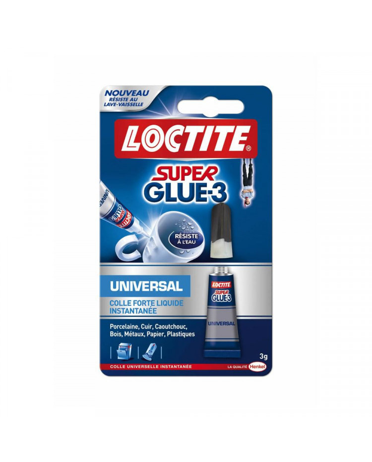 Colle puissante universelle instantanée pour coller en quelques secondes la majorité des matériaux. Grâce à sa formule liquide, Loctite Super Glue-3 s'étale facilement pour un collage en toute simplicité. Cette formule de colle résiste à l'eau et maintenant au lave-vaisselle.