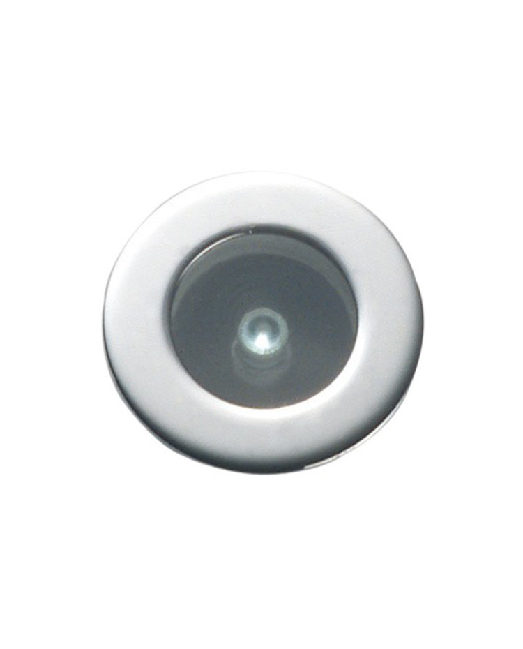 Corps en laiton chromé, diffuseur en technopolymère transparent. Adapté pour le montage sur des surfaces inflammables. Fixation par bague filetée.