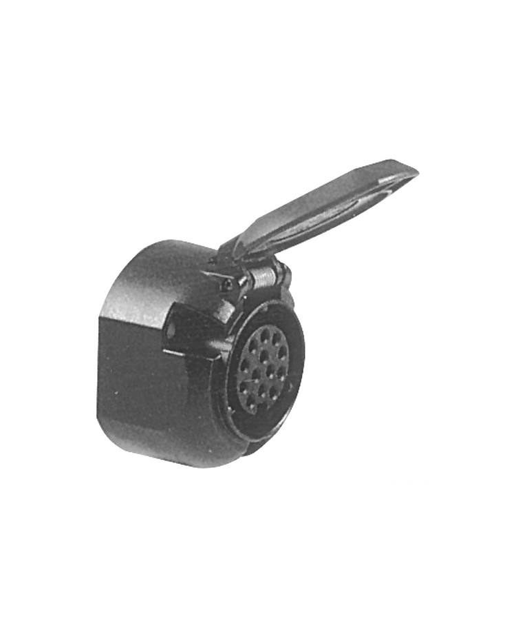 Prise femelle 13 pôles 12 volts pour remorques ISO 11446. En ABS noir et laiton chromé