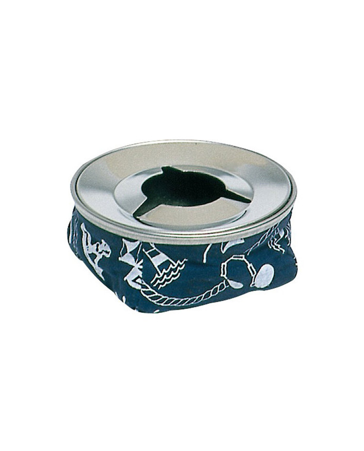 En inox. Très stable grâce à son fond lesté. De belle facture, avec porte-cigarette.
