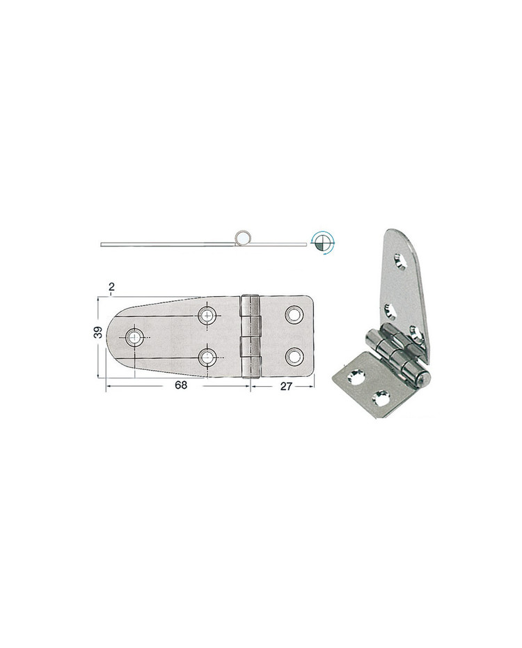 Charnière inox asym. 95x39mm