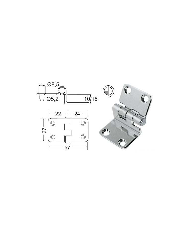 Charnière inox 57x37x10