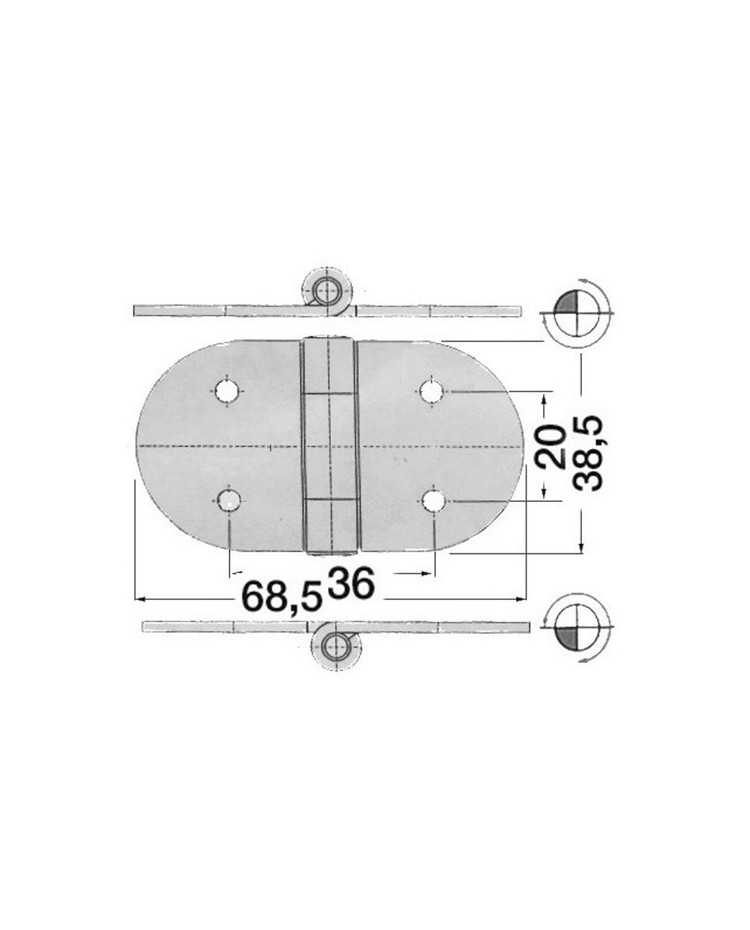 Charnière inox 68,5 x 38,5
