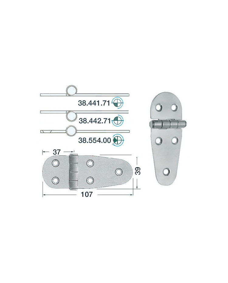 38.442.71 Charnière inox 2 mm - 101 x 41.5 mm - noeud renversé