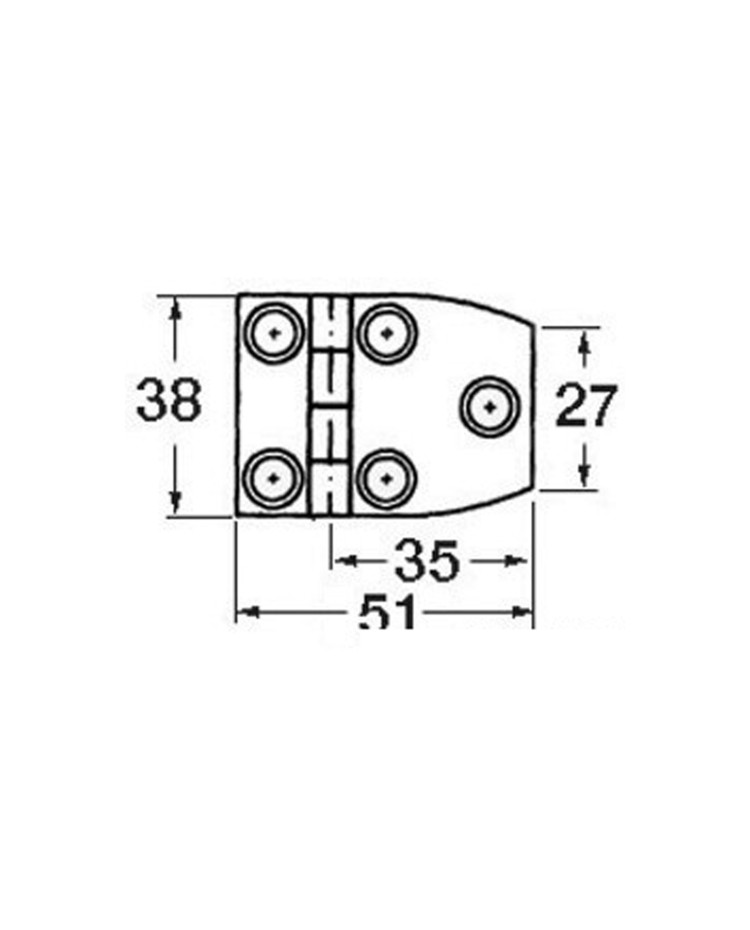 Charnières en inox sans vis, douilles femelles, filetées 4MA, soudées sous la charnière, même position que les trous passants.
