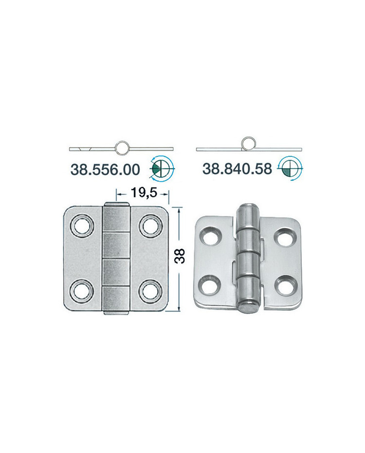 38.840.58 Charnière inox 2 mm - 38 x 39 mm - noeud saillant
