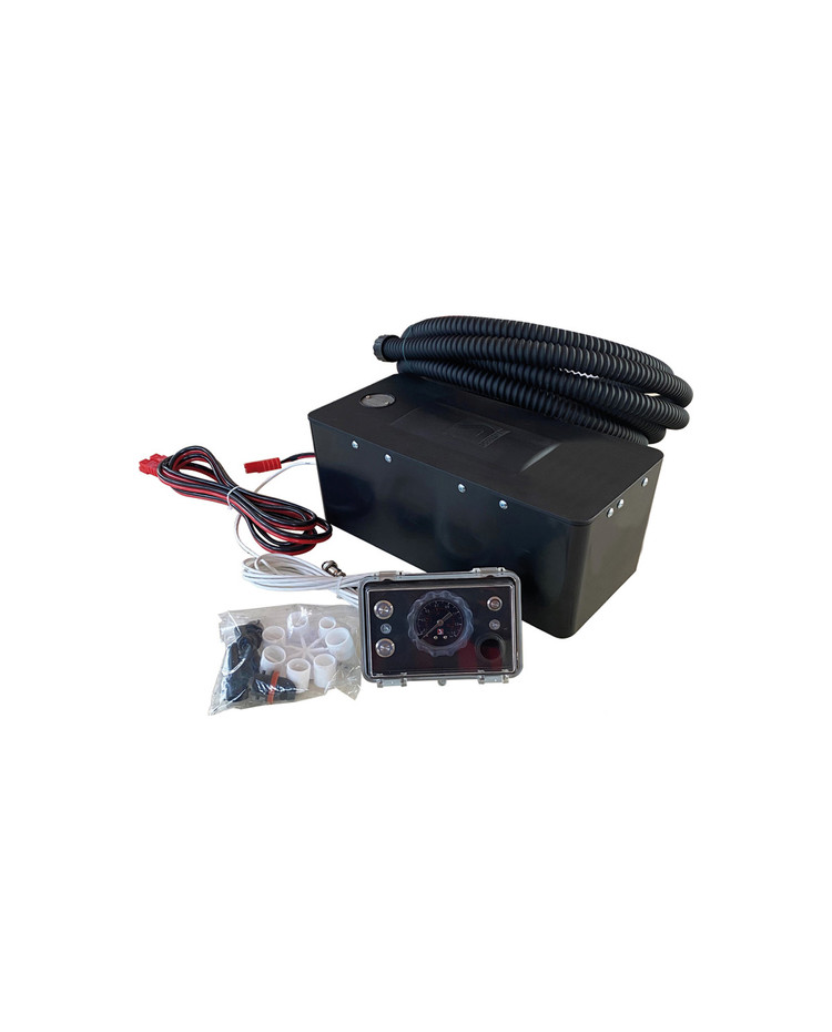 Il inclut une pompe à placer dans un endroit protégé aussi qu’un panneau de contrôle qui peut être positionné dans un autre endroit sur le bateau (garage annexes, passerelle arrière, pont).