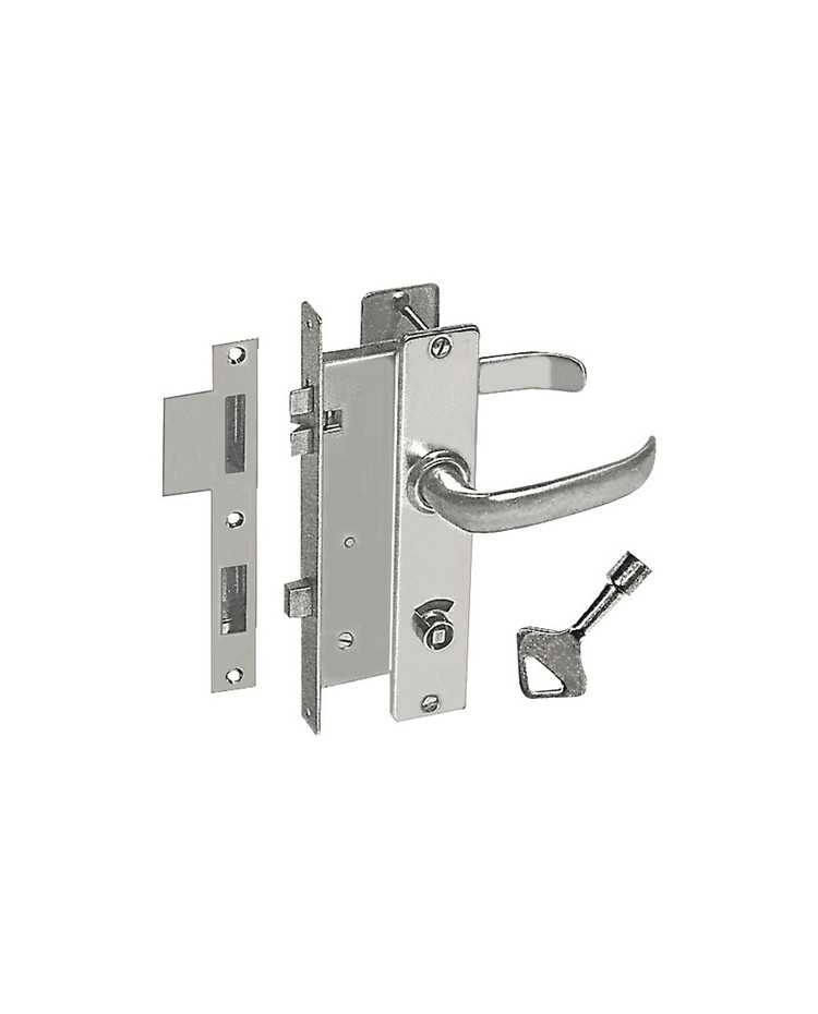 Serrure anti-vibrations à encastrer avec sécurité de l’intérieur pour toilettes.