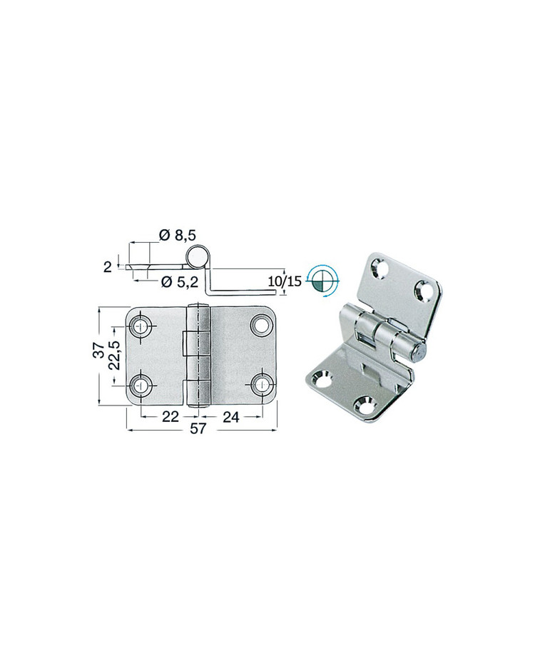 Charnière inox 57x37x15