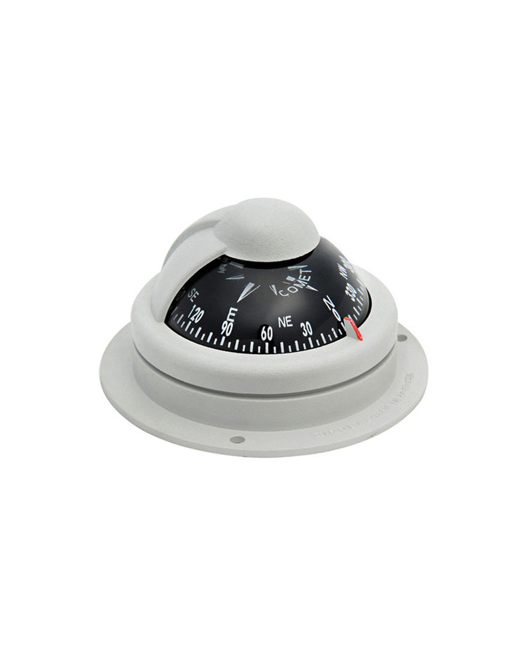 Compas Comet avec rose de 2''1/2 graduée tous les 5°. Disponible en version à plaquer ou avec étrier pour fixation horizontale ou verticale.