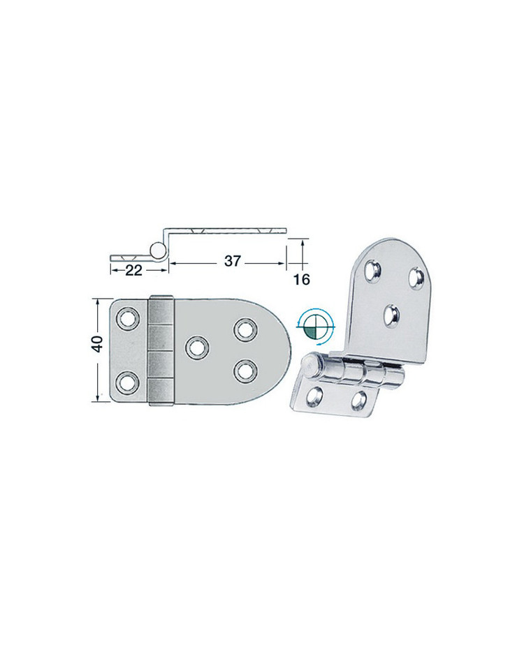 Charnière inox saillie 59x40