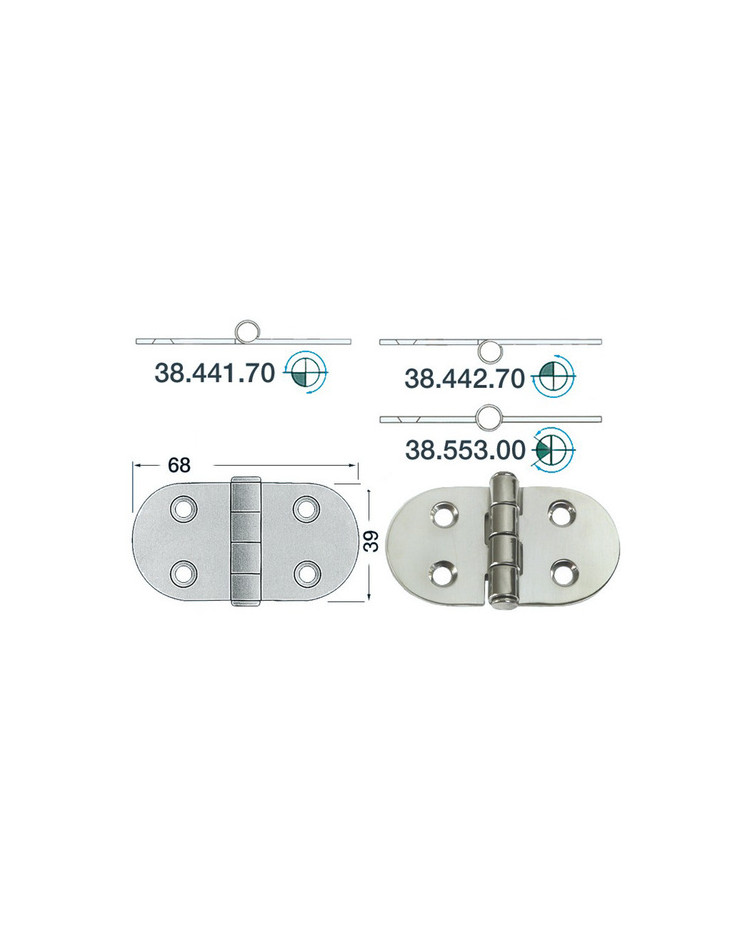 Charnière inox 2 mm - 68 x 39 mm - noeud renversé