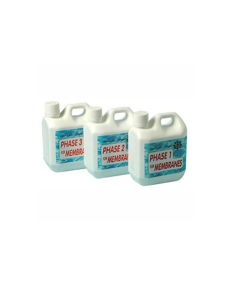 Le cycle utilise 3 produits spécifiques.La phase 1 et la phase 2 doivent toujours être utilisées en combinaison, soit lorsque le rendement du dessalinisateur chute, ce qui est généralement dû à l'encrassement des membranes, soit une fois par an.La phase 3 doit être utilisée lorsque le dessalinisateur ne sera pas utilisé pendant une longue période. Empêche la formation de dépôts et de taches. Ne pas utiliser sur les machines de récupération d'énergie (par exemple SCHENKER, SPECTRA).Le paquet de 1 litre est la quantité appropriée pour traiter tout dessalinisateur de bateau. Chaque produit Phase prend 20 minutes pour agir..