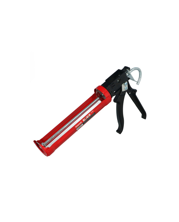 Pistolet d'extrusion pour l'application de mastics d'étanchéité et d'adhésifs. Poignée en aluminium et corps en acier.