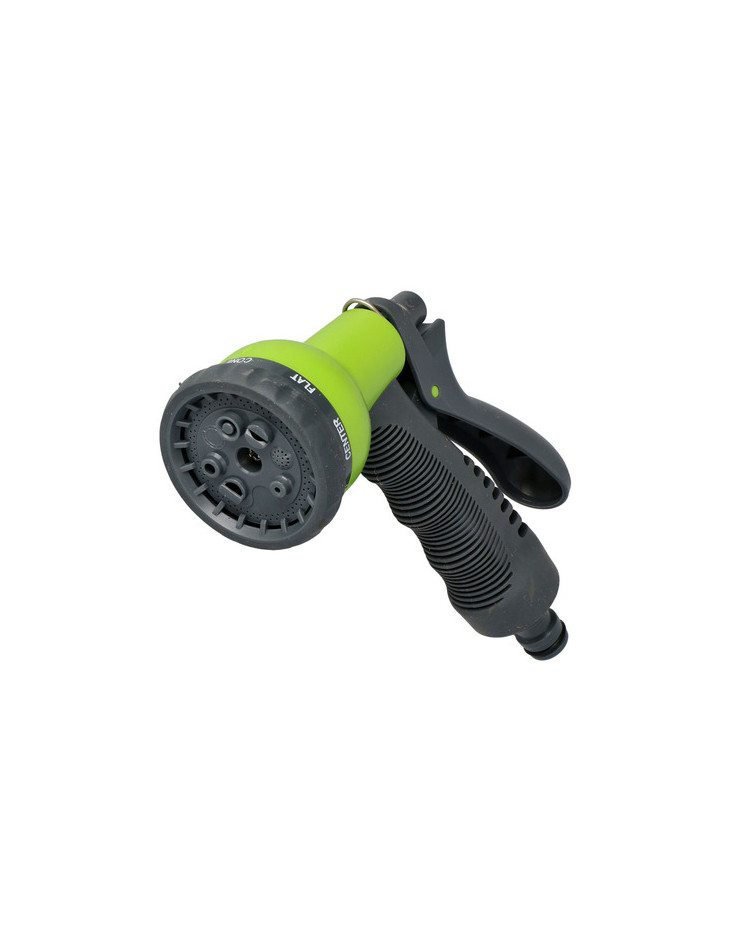 La buse a une tête de pulvérisation rotative, permettant un réglage facile entre 8 modèles de pulvérisation. La gâchette arrière tient confortablement dans la main et la poignée en caoutchouc offre un grand confort d'utilisation. Parfait pour une utilisation générale pour l'arrosage ou le nettoyage.
