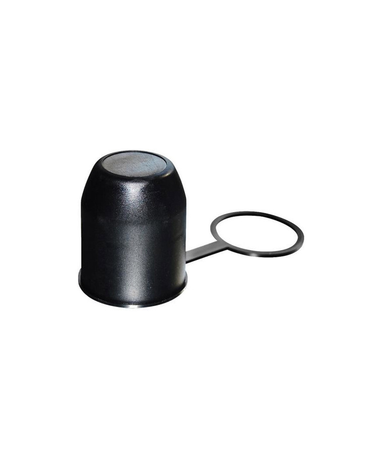 Le cache-boule d'attelage en PVC noir avec sa bague permettant de laisser le cache-boule accroché à la boule d'attelage lors de son utilisation.