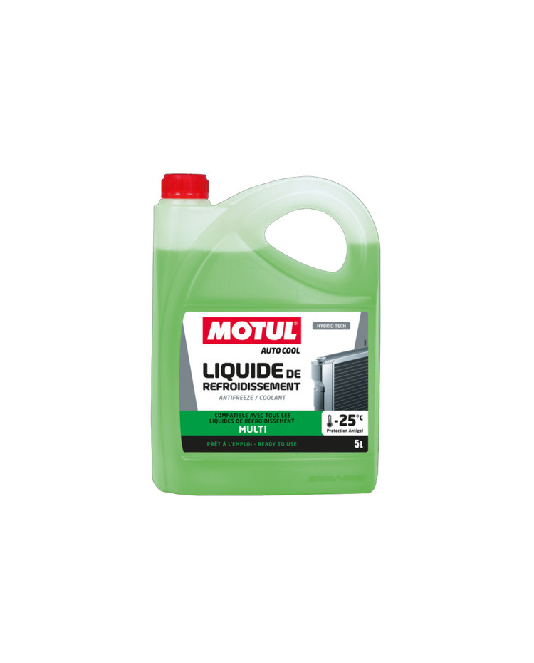 MOTUL LR MULTI est un liquide de refroidissement, prêt à l'emploi, élaboré à base de monoéthylèneglycol, utilisant une technologie mixte, organique et non organique, appelée additivation hybride. Compatible avec tous les liquides de refroidissement sur base monoéthylèneglycol. Idéal pour faire l’appoint. Recommandé pour les circuits de refroidissement moteurs Essence et Diesel des véhicules légers, poids lourds, travaux publics, agricoles, motoculture, bateaux, moteurs stationnaires …