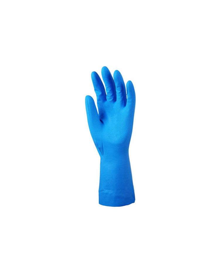 Gant en acrylonitrile bleu avec finition extérieure adhérisée diamant et manchette longue. Haute résistance aux produits chimiques.