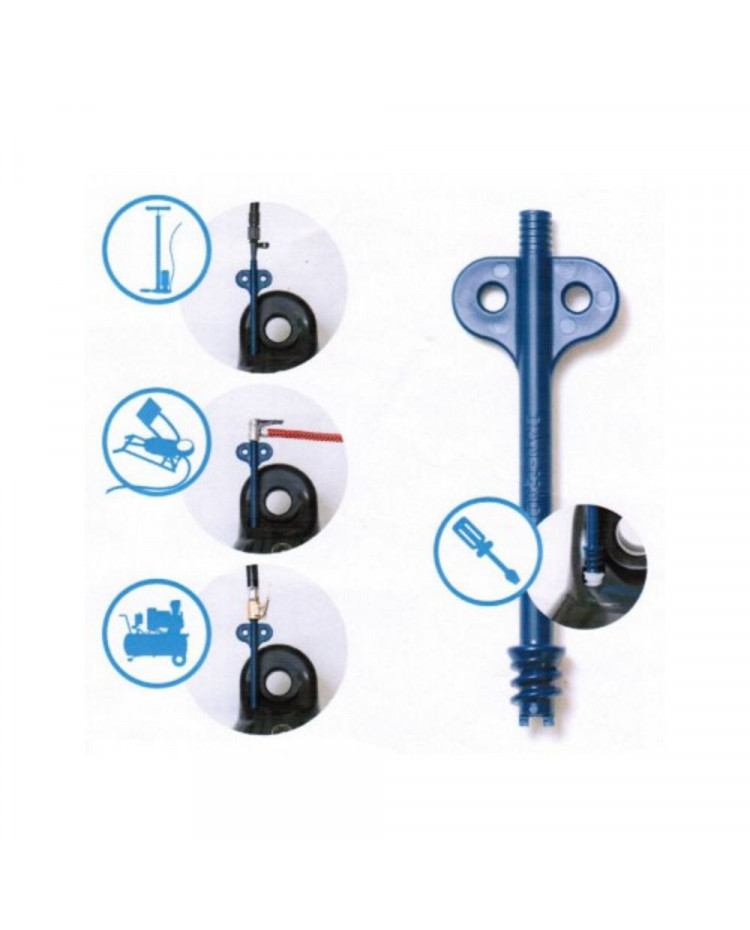 Adaptateur de gonflage pour les pare battage et bouées Dan-Fender. Une extrémité peut être utilisée comme un tournevis pour défaire le bouchon de valve blanc.