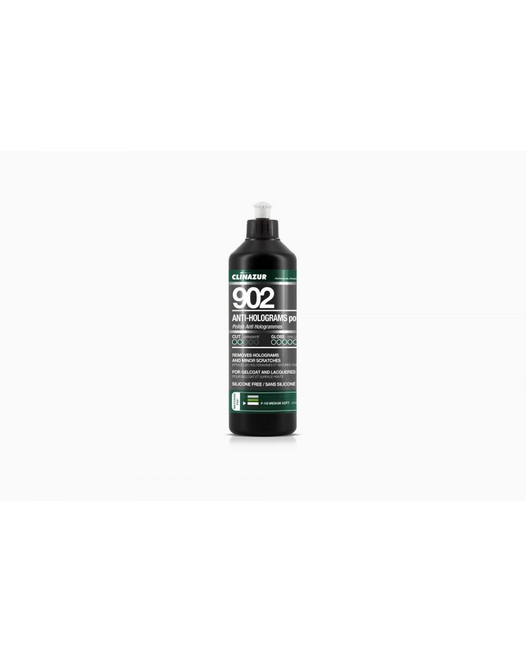 Troisième de la série de polish 900, le Clinazur 902 est un composé de polissage fin pour une finition brillante parfaite. Il élimine les petits défauts et les hologrammes. Pour de meilleurs résultats, utilisez une polisseuse à vitesse variable équipée du tampon en mousse moyen souple P102.