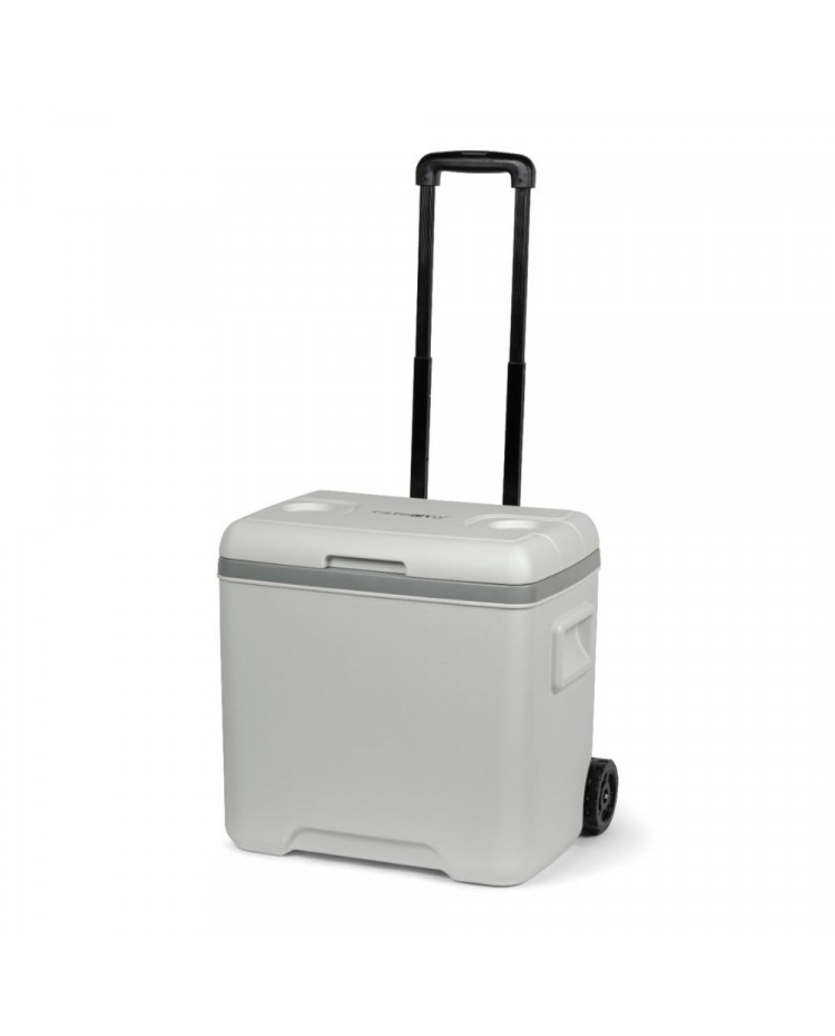 La Steamy Marine 30 Roller est une glacière à roulettes contemporaine et pratique. Grâce à ses roues et à sa poignée extensible, il est facile de la déplacer, même lorsque la glacière de 30 litres est remplie à ras bord. La conception haute permet également de transporter facilement des bouteilles de 1,5 litre debout.