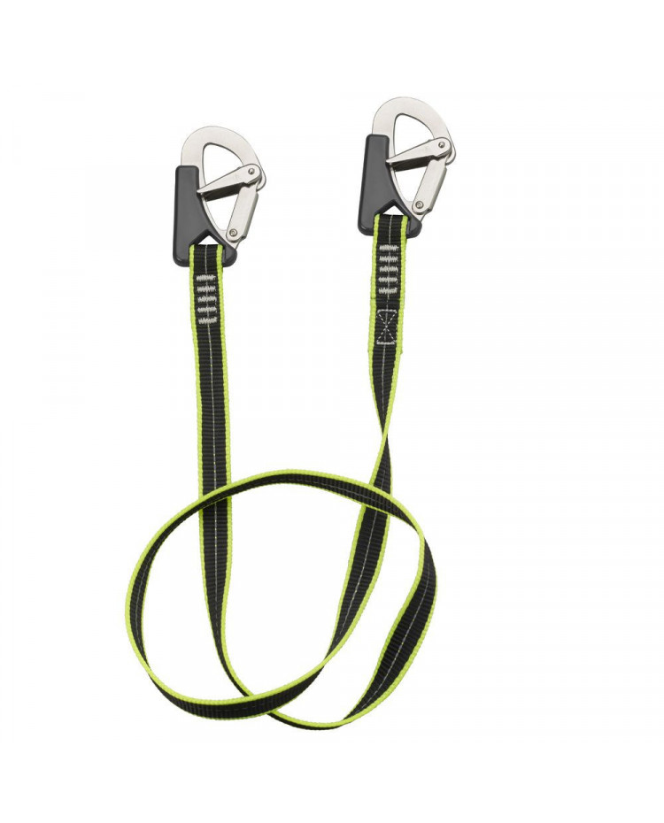 Longe plate avec deux mousquetons inox à double sécurité et fermeture automatique
