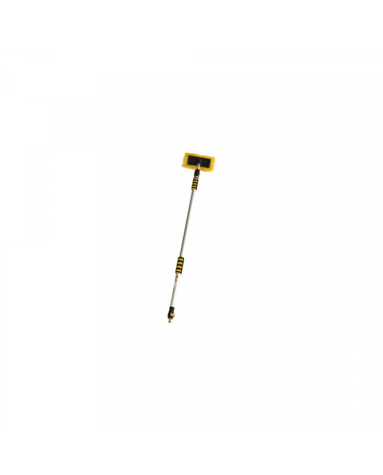 Ce balai spécialement conçu pour les véhicules de loisirs est équipé d'une brosse anti-rayures, avec poils latéraux, son manche est télescopique de 1,40 à 2,50 m.