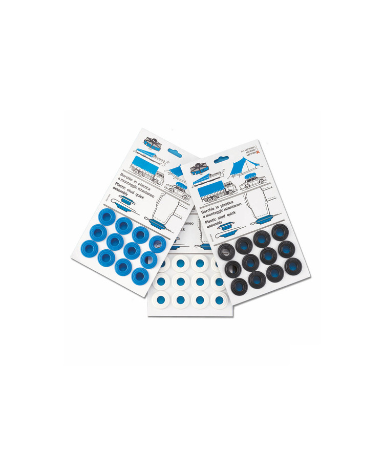 Set d'œillet de diamètre 15 mm avec rondelle à sertir sur bâche, taud, housse. Se serti à l'aide d'un marteau.
