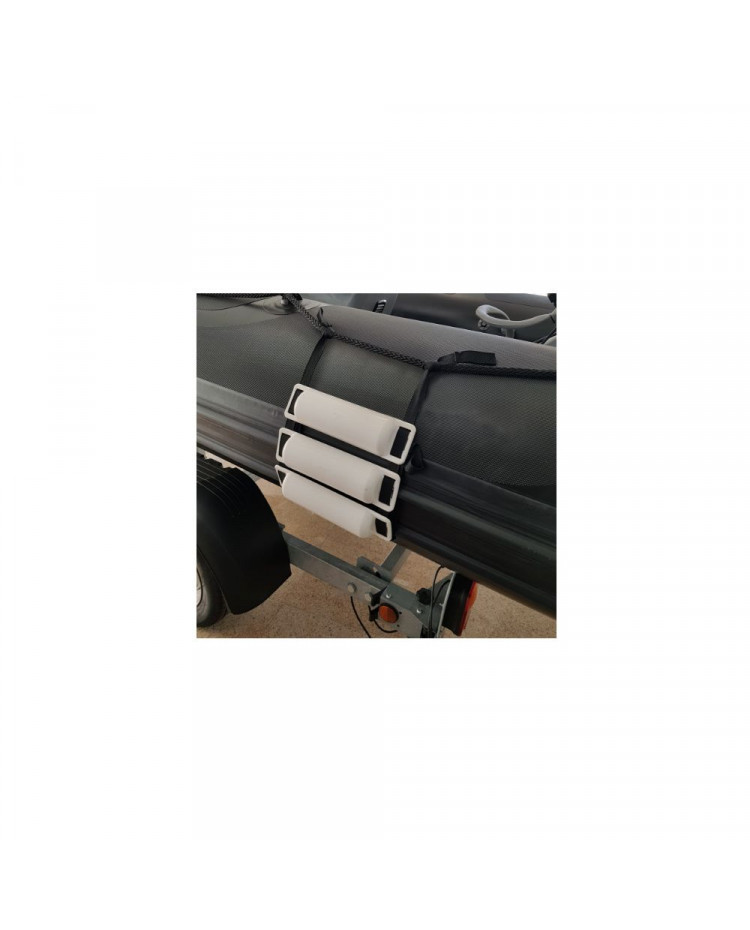 Idéal également pour protéger la coque ou les flotteurs d'un semi-rigide lors du transport sur remorque : il suffit de glisser les demi-lunes entre la coque et les sangles qui maintiennent le bateau sur la remorque.