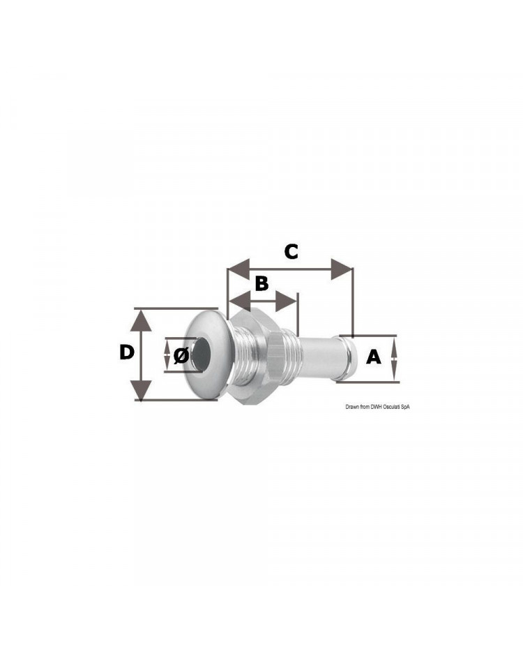 OSCULATI Mini passe-coque AISI 316 au ras 1/4''