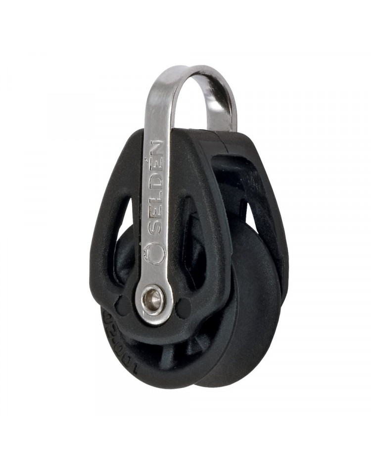 Poulie Simple à friction en composite avec bride, ø Réa 20 mm ø Cordage max 6 mm, rupture 140kg.