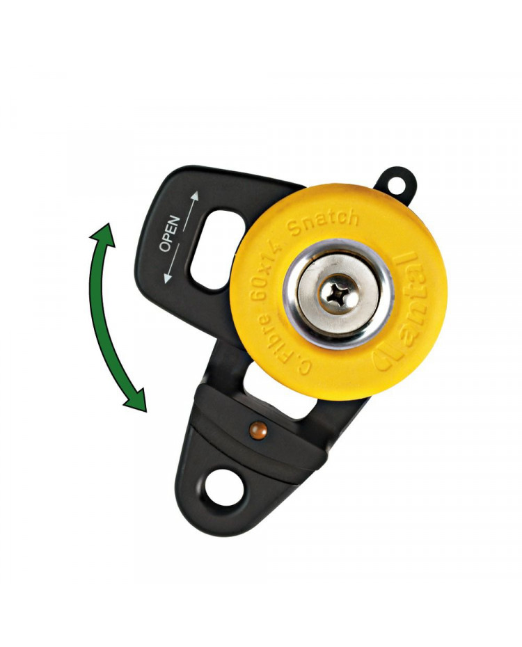 MATÉRIAUX: réa en résine avec bague en fibres composites et roulements latéraux à billes. Les joues de la poulie sont en aluminium anodisé dur noir traité au téflon avec des protections caoutchouc latérales (Le caoutchouc jaune est sur la partie mobile de la poulie).