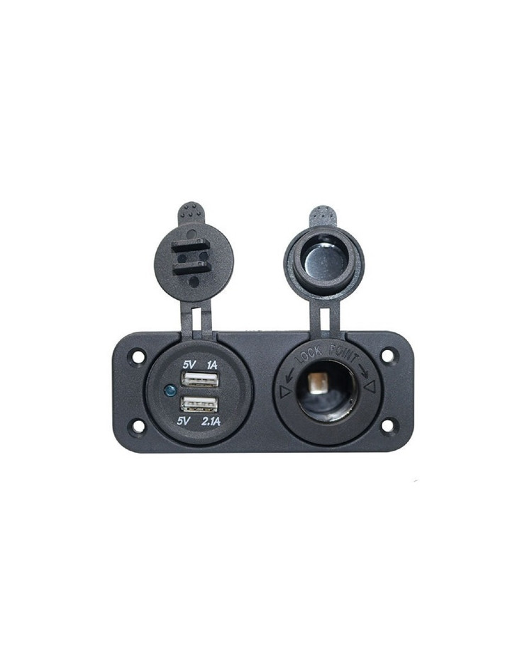 Prise allume-cigare + double prise USB - noire