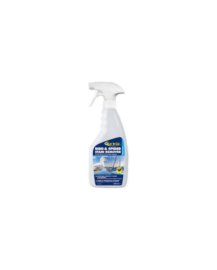 Les déjections d'oiseaux et d'araignées dégradent l'aspect de n'importe quel bateau mais pulvérisez simplement le Nettoyant Star brite pour Fientes et Taches d'Araignées et les souillures commenceront à se disperser instantanément.