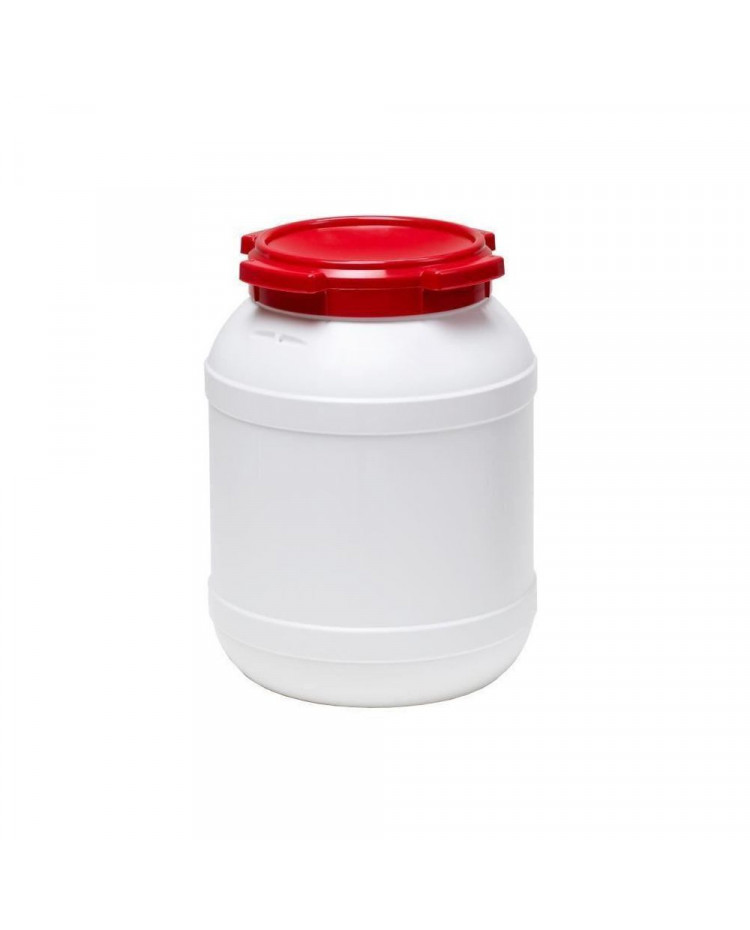 Fermeture assurée par un couvercle vissant muni d'un joint d'étanchéité et de poignées.