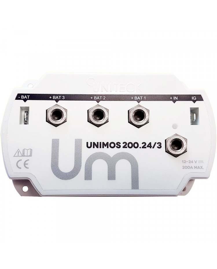 UNIMOS répartit la charge de votre alternateur, régulateur de charge solaire ou chargeur de batterie automatique sur chacune de vos batteries sans perte de puissance tout en isolant chaque batterie pour éviter qu'elles se chargent et se déchargent entre-elles.