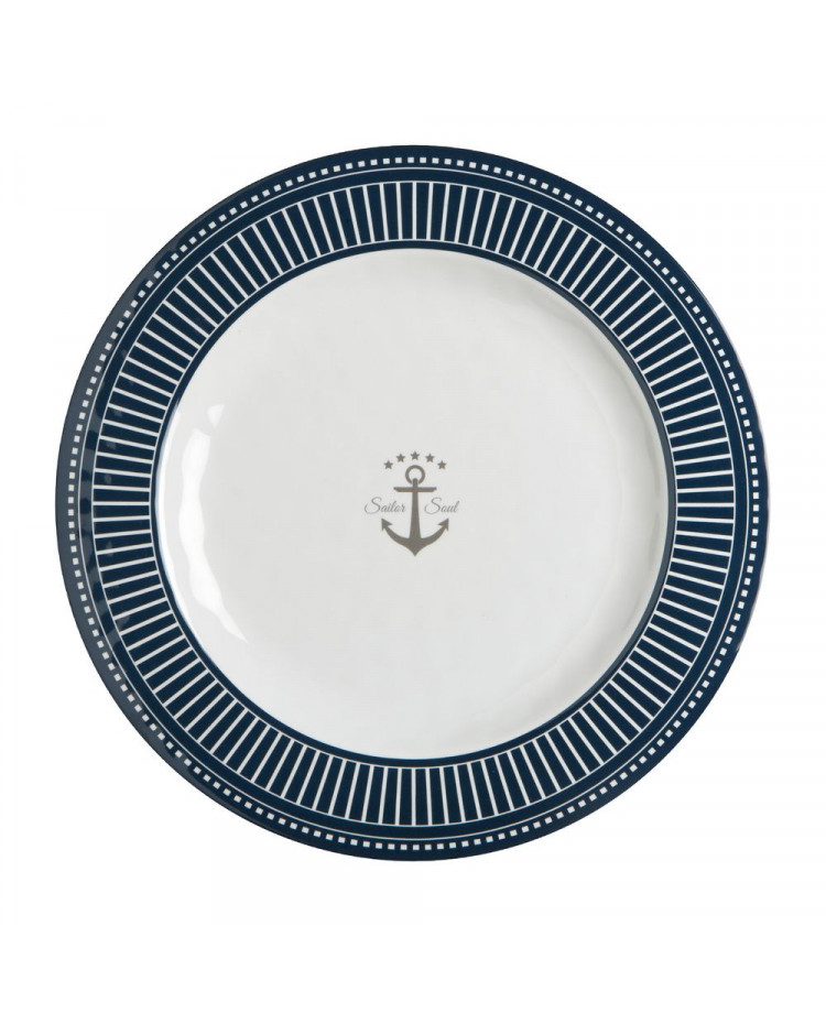 La grande assiette plate en mélamine fait partie de la vaisselle en mélamine incassable Sailor Soul qui dispose de sets d'assiettes, mugs, saladier, tout fabriqué en mélamine, décorée avec un style nautique très élegant.